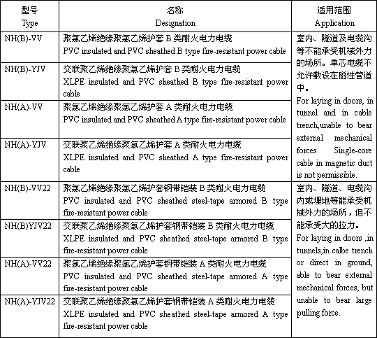 產(chǎn)品標準 本產(chǎn)品按GB12706《額定電壓35kV及以下銅芯、鋁芯塑料J緣電力電纜》和GB12666《電線電纜燃燒實驗方法》標準生產(chǎn),同時還可根據(jù)用戶需要按國際電工委員會推薦的IEC標準、英國BS標準、德國DIN標準、美國ICEA標準及日本JIS標準生產(chǎn)。 The product is manufactured according to the standard of GB12706 and GB12666 or IEC,BS,DIN,ICEA,and JIS upon request.適用范圍 本產(chǎn)品適用于工頻額定電壓0.6/1kV及以下配電線路或工業(yè)裝置中有耐火要求的固定敷設(shè)場所使用。 The product is suitable for use in power distribution lines or fixed installations with rated power-frequency voltage up to and including 0.6/1kV. 使用特性 ·工頻額定電壓U0/U:0.6/1kV。 Rated power-frequency voltage U0/U:0.6/1kV. ·電纜導體的高允許長期工作溫度(PVC/XLPE):70℃/90℃. Max.permissible continuous operating temperature of conductor (PVC/XLPE): 70℃/90℃ ·短路時(長持續(xù)時間不超過5s)電纜導體高允許溫度 PVC:導體截面≤300mm2-160℃ 導體截面>300mm2-140℃ XLPE:250℃ Max.short-circuit temperature of the conductor shall not exceed(5s maxiumduration): PVC:cross-section of conductor≤300mm2-160℃ cross-section of conductor>300mm2-140℃ XLPE:250℃ ·電纜敷設(shè)時環(huán)境溫度應(yīng)不低于0℃ The ambient temperature under installation should not below 0℃ ·電纜的彎曲半徑:多芯電纜不小于電纜外徑15倍,單芯電纜不小于電纜外徑20倍。 The bending radius of a single-core cable should not less than 20 times of the cable diameter. The bending radius of multicore-cable should not less than 15 times of the cable diameter. |