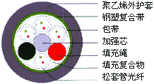 產(chǎn)品型號(hào): GYSTS也叫(GYTS) 光纖松套管 金屬中芯加強(qiáng)件 纜芯填充油膏 軋紋鋼帶粘結(jié)PE護(hù)套